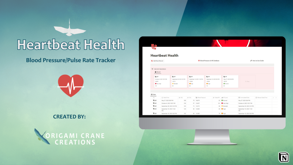Heartbeat Health: Notion Blood Pressure and Pulse Reading Tracker