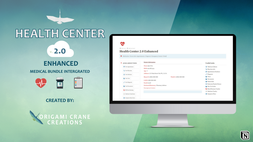 Embrace the future of health management with Health Center 2.0 Enhanced. It's time to experience the peace of mind that comes with having all your health information organized and at your fingertips. Start your journey towards better health today with Origami Crane Creations!